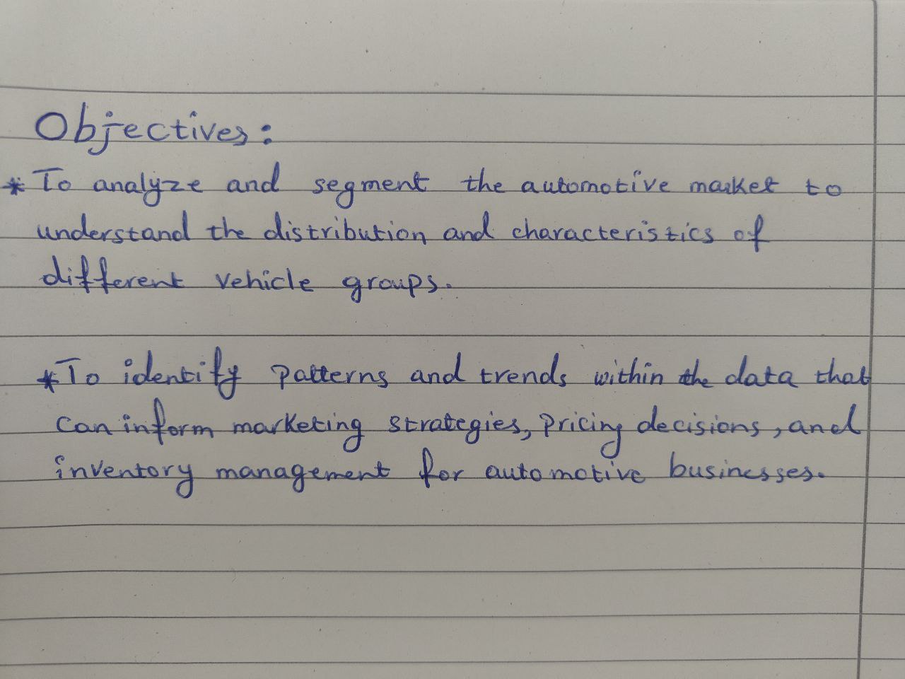 - Pricing Strategy: Insights from the clusters can help in setting competitive prices. Vehicles in Cluster 0, being very high-priced and high-powered, might allow for a premium pricing strategy, while those in Cluster 1 might require more competitive pricing to attract buyers looking for economical options.