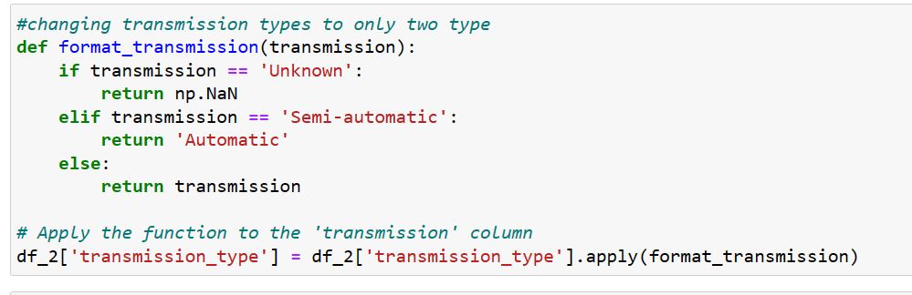 - Transmission values have been categorized into two types: Automatic and Manual. Semi-automatic values are also considered as Automatic.